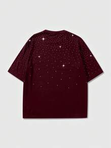 Street Life قميص تي شيرت قصير الأكمام رجالي كاجوال مزين بالبلورات، صيفي