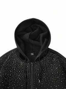 Street Life سترة هوديي مطبوع عليها رسوم وأحجار راين ستون متنوعة للرجال بأسلوب الشارع، تصميم مشترك للجنسين