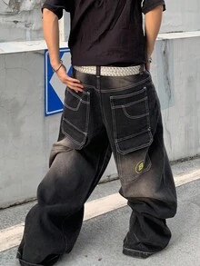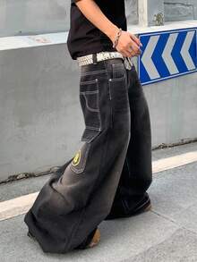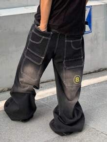 Street Life جينز رجالي فضفاض واسع الساق بتصميم فينتاج مغسول