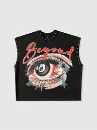 Grunge Punk ملابس علوية أكمام بلا أكمام رجالي بطبعة شكل أنيقة (زخرفة بالراين عشوائية)، صيفي