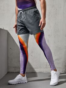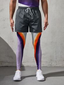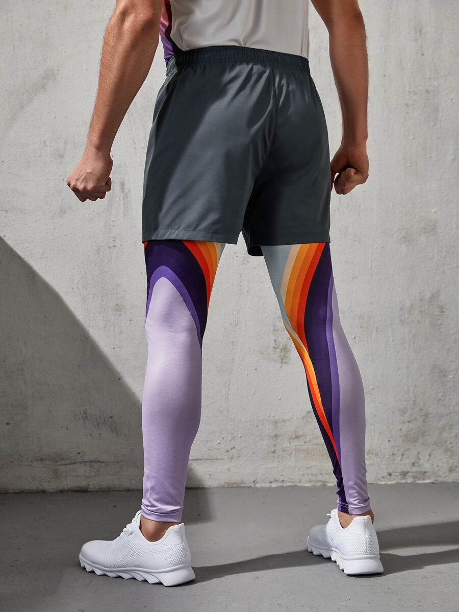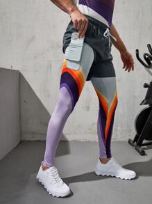 سروال رياضي لاصق بطباعة شيفرون 2 في 1 مع جيب هاتف للرجال