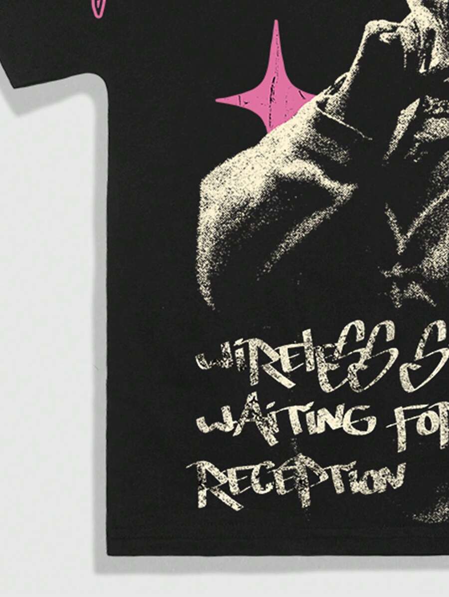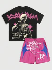 Street Life للرجال مجموعة من 2 قطعة: تي شيرت مطبوع عليه شعار وصورة + شورت
