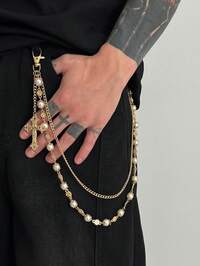 Fairycore 1 قطعة سلسلة بنطلون من خرز الزينة الصناعي بتصميم عصري وبسيط، سلسلة من سبيكة الحديد المطلي، إكسسوار شخصي للرجال، لتزيين البنطلون، هدية للمناسبات