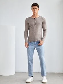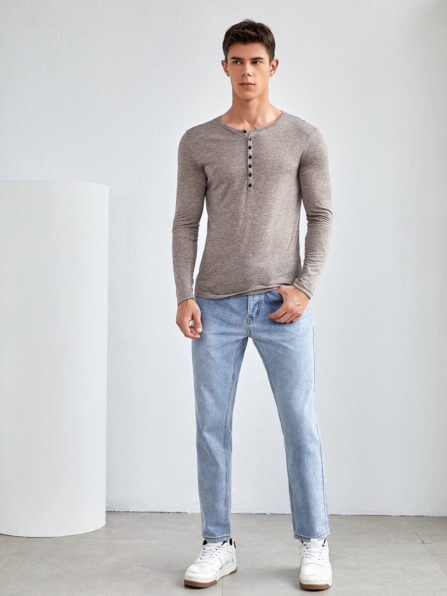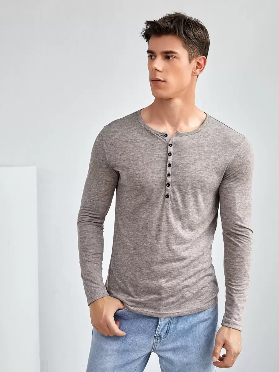 GENTILAND تي شيرت بفتحة نصف وبزر للرجال