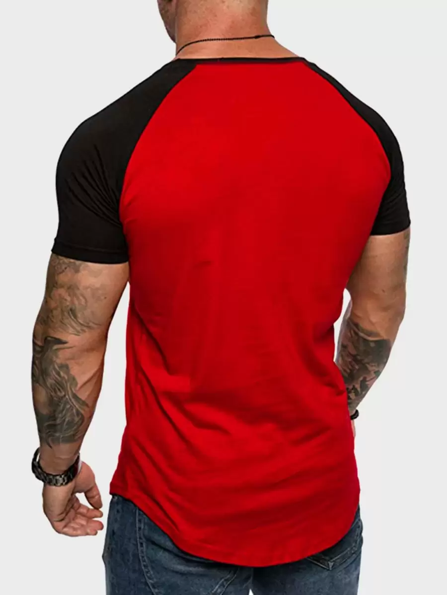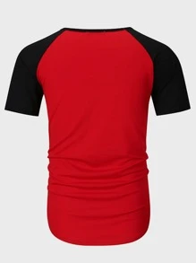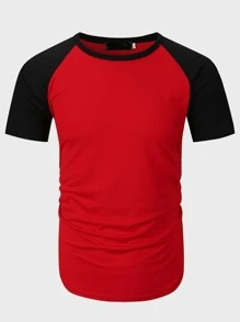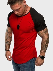 تي شيرت بيسبول باكمام راجلان وبالوان متجانسة للرجال