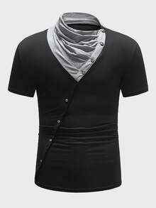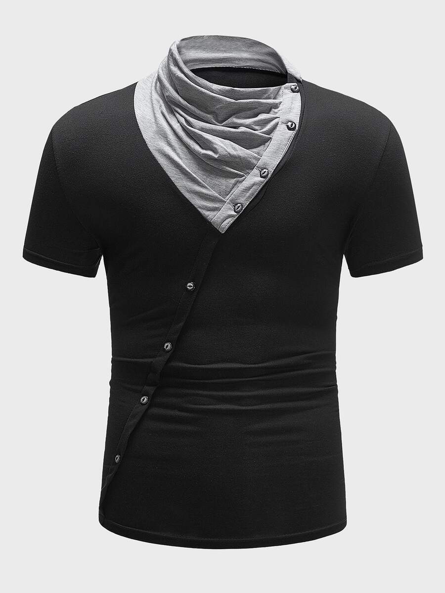 تي شيرت بتفاصيل ازرار بعنق قلنسوة متباين للرجال