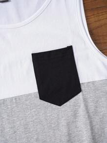 لباس علوي تانك قطن الوان متجانسة جيب مرقع للرجال