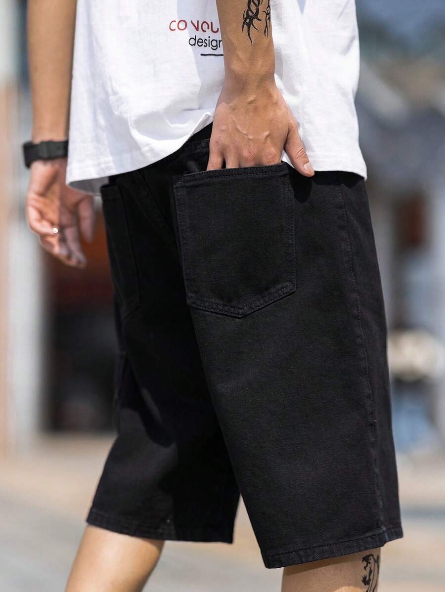 Manfinity EZcore شورتات جينز قطنية رجالية للخروج بجيب خارجي، قصيرة عادية، سوداء، مناسبة كهدية للزوج أو الحبيب