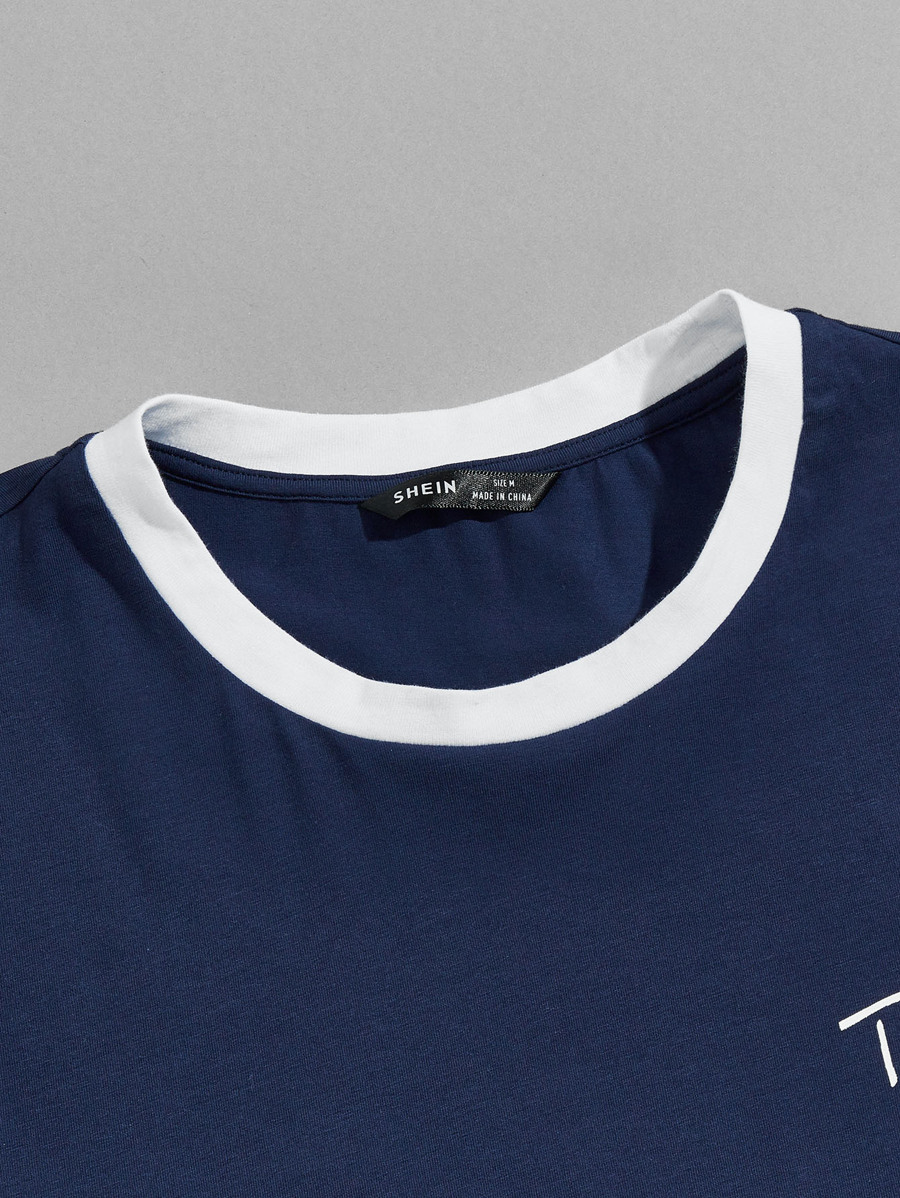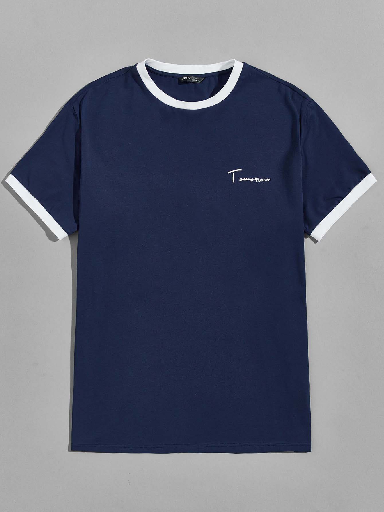 تي شيرت بشريط قطن بطباعة أحرف للرجال