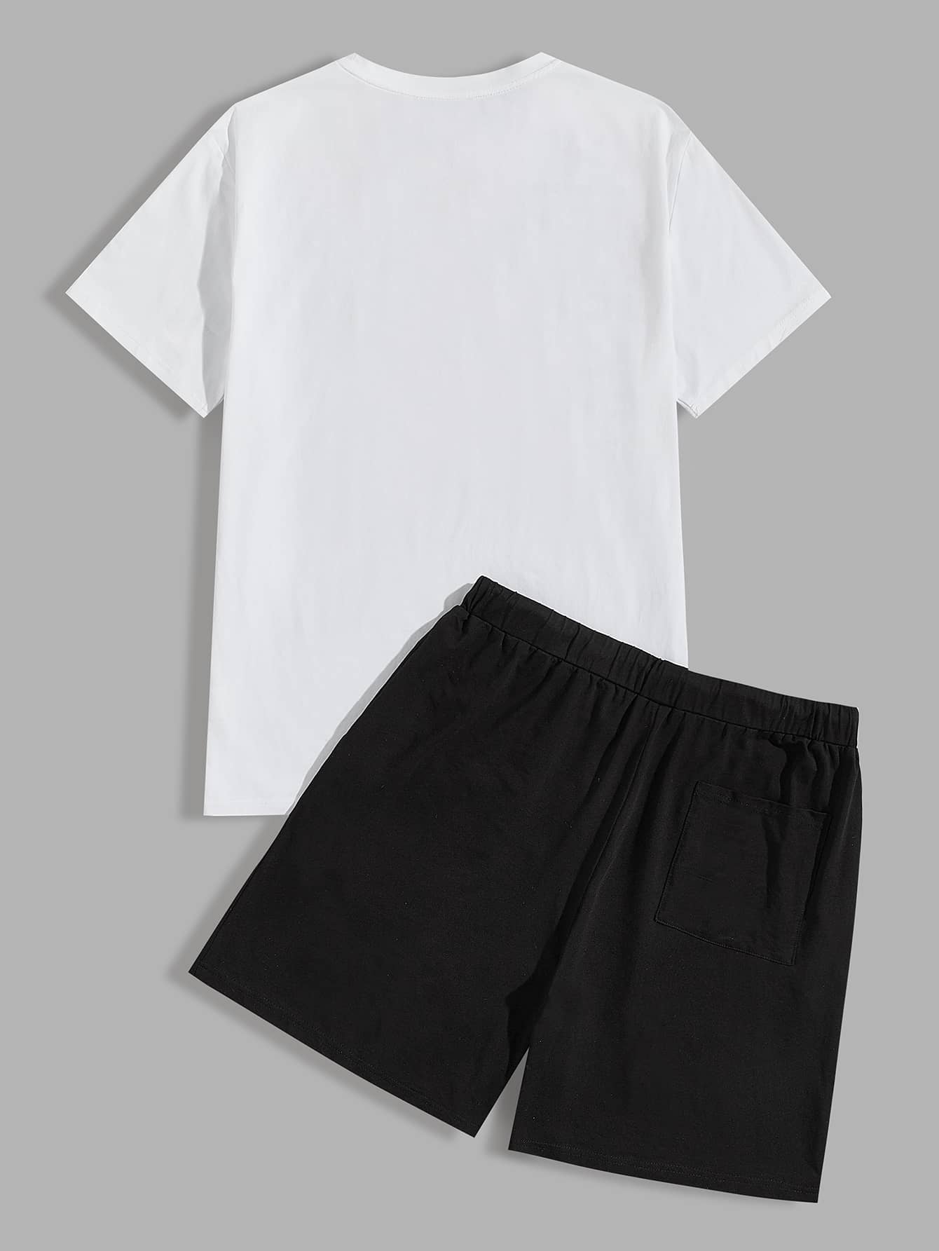 للرجال طقم تي شيرت قطن بطباعة شعار النيون لوحة و شورت رياضي