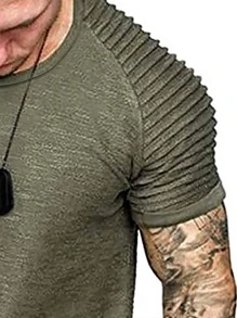 تي شيرت باكمام بطية وبحافة منحنية للرجال