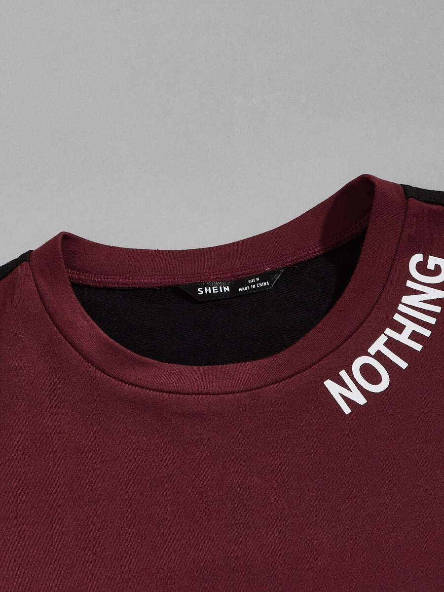 بلوفر بالوان متجانسة وبجرافيك عبارة للرجال