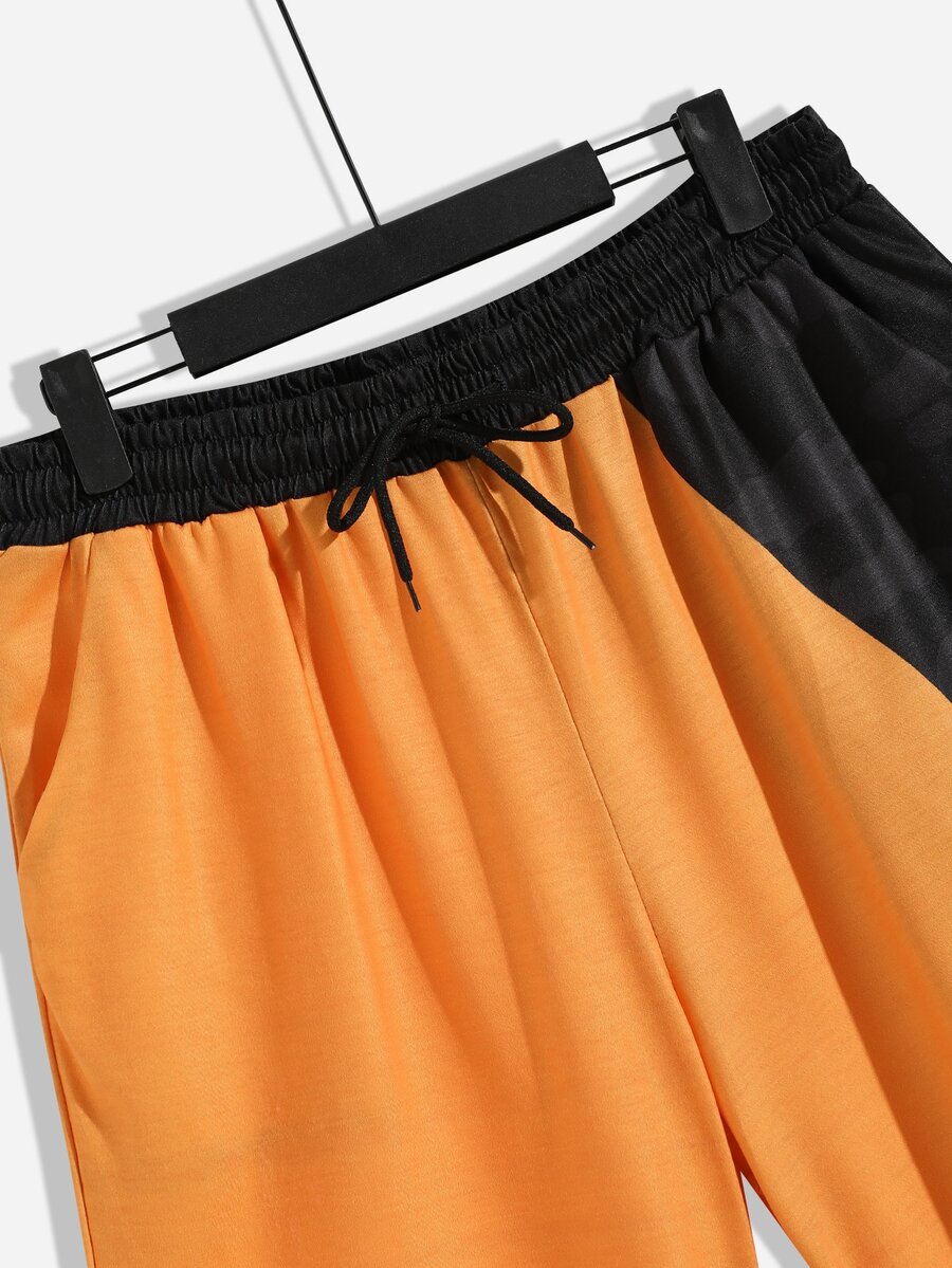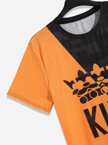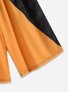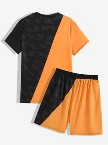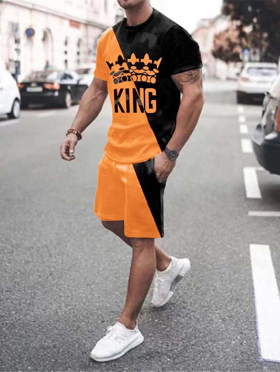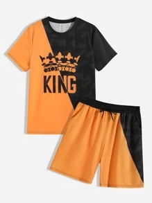 شورت مع تي شيرت بطباعة أحرف ألوان متباينة للرجال