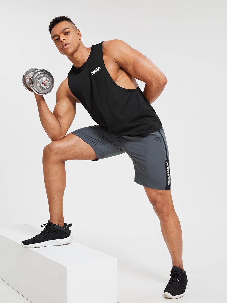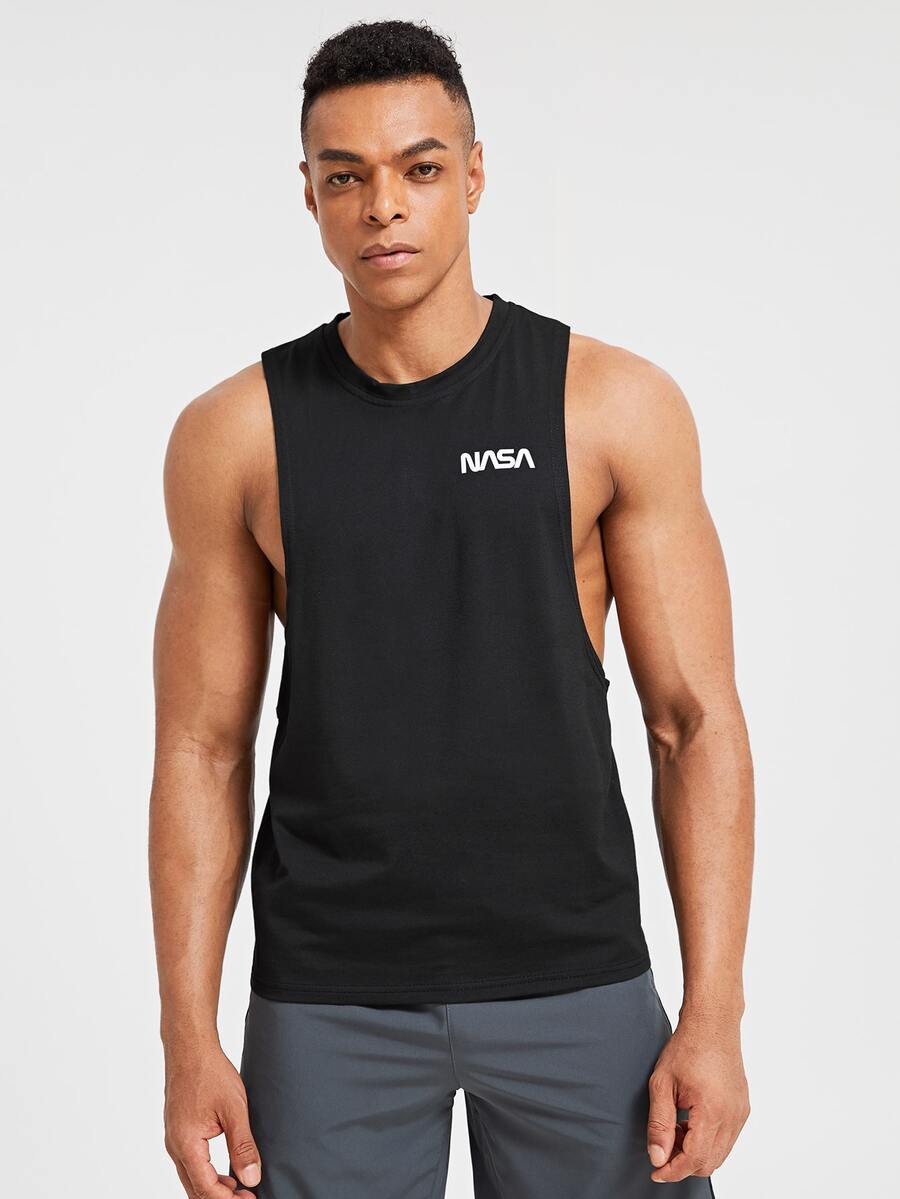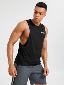 لباس علوي تانك رياضي بكتف منخفض وبجرافيك عبارة للرجال