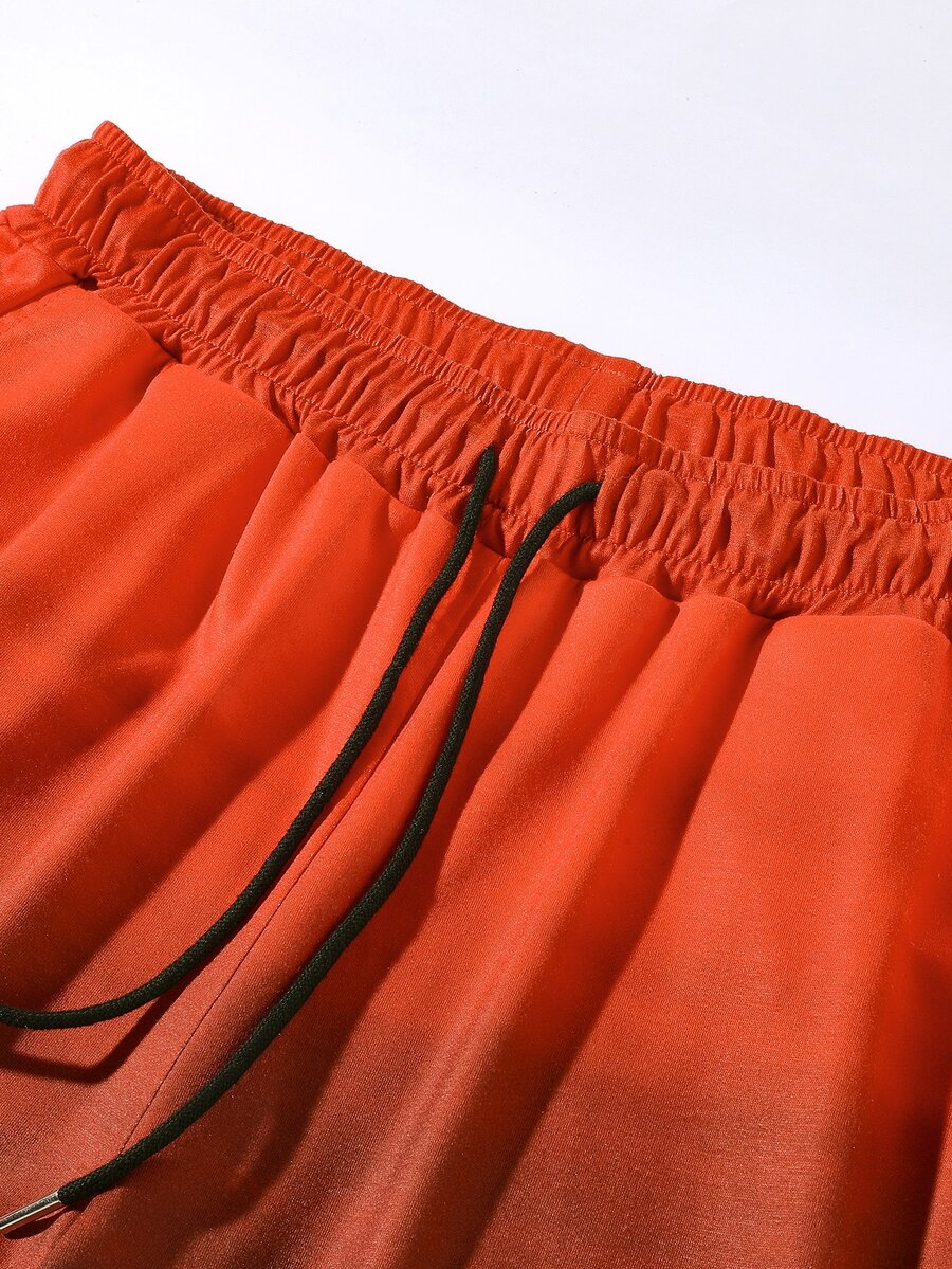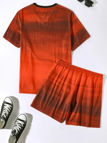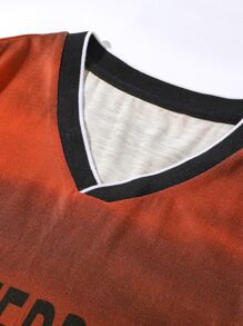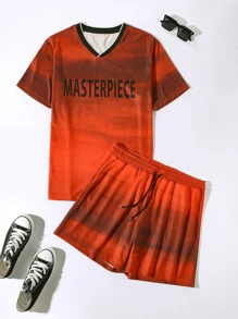 شورت تريك برباط خصر مع تي شيرت بعنق V بجرافيك عبارة للرجال