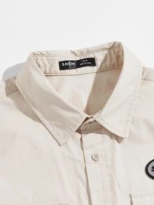 قميص بحافة منحنية وبجيب رفرف مرقع عبارة للرجال