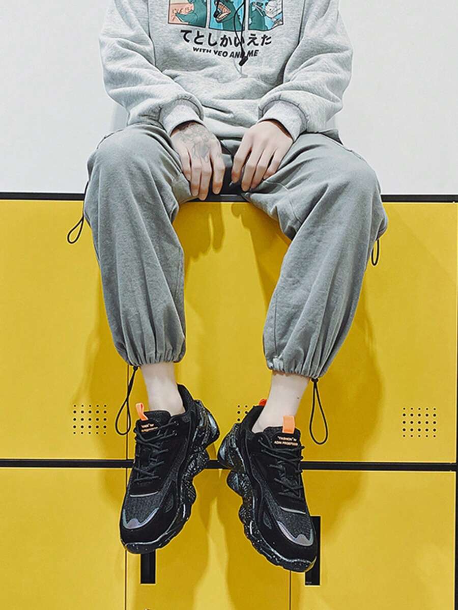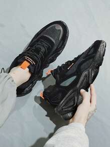 حذاء رياضي للرجال متعدد الألوان بطراز الشبكة للتهوية، يربط من الأمام مع قطع دانتيل، يمكن ارتداؤه في المدرسة