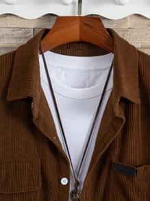 قميص بتفاصيل مرقع جيب قلاب بدون تي شيرت للرجال