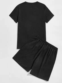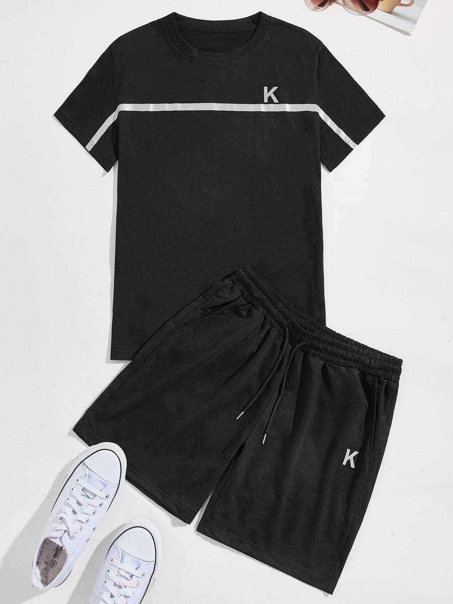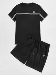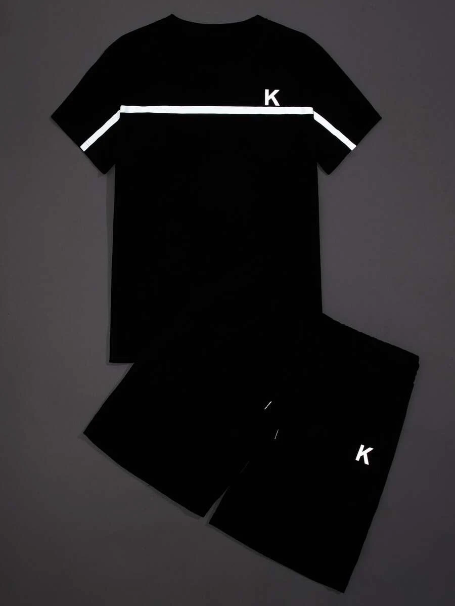 شورت تريك مع تي شيرت بلوحة عاكس للرجال