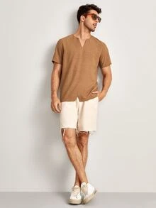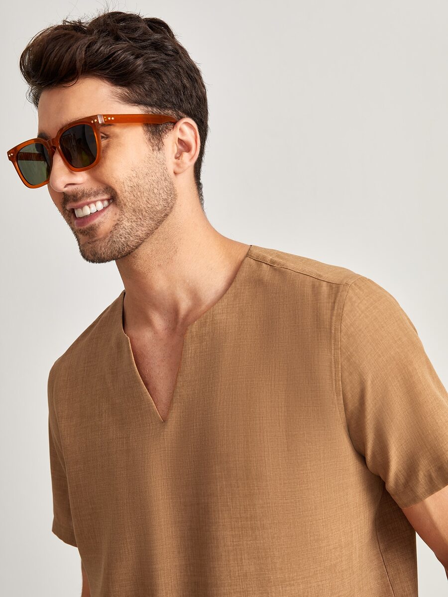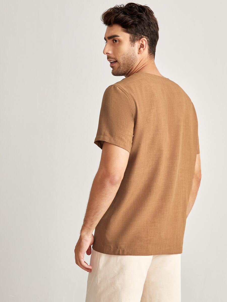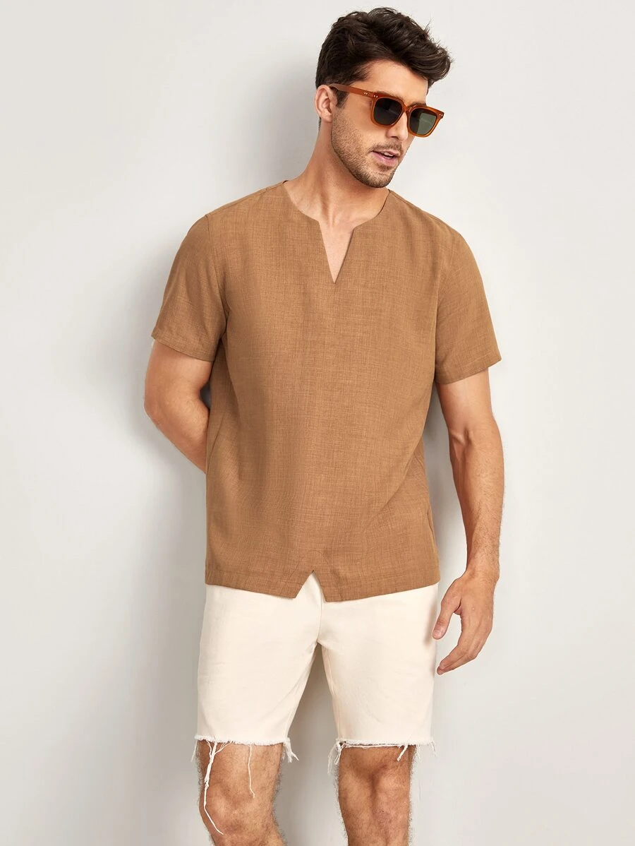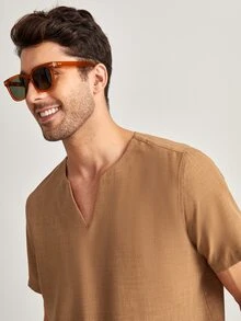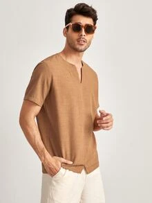 توب موحد اللون بياقة وحافة حرف V رجالي