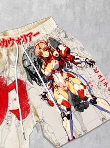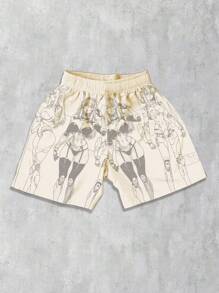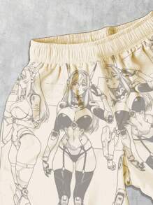 Anime شورت رجالي بطباعة الطلاء الجرافيتي , كاجوال مناسب للربيع والصيف