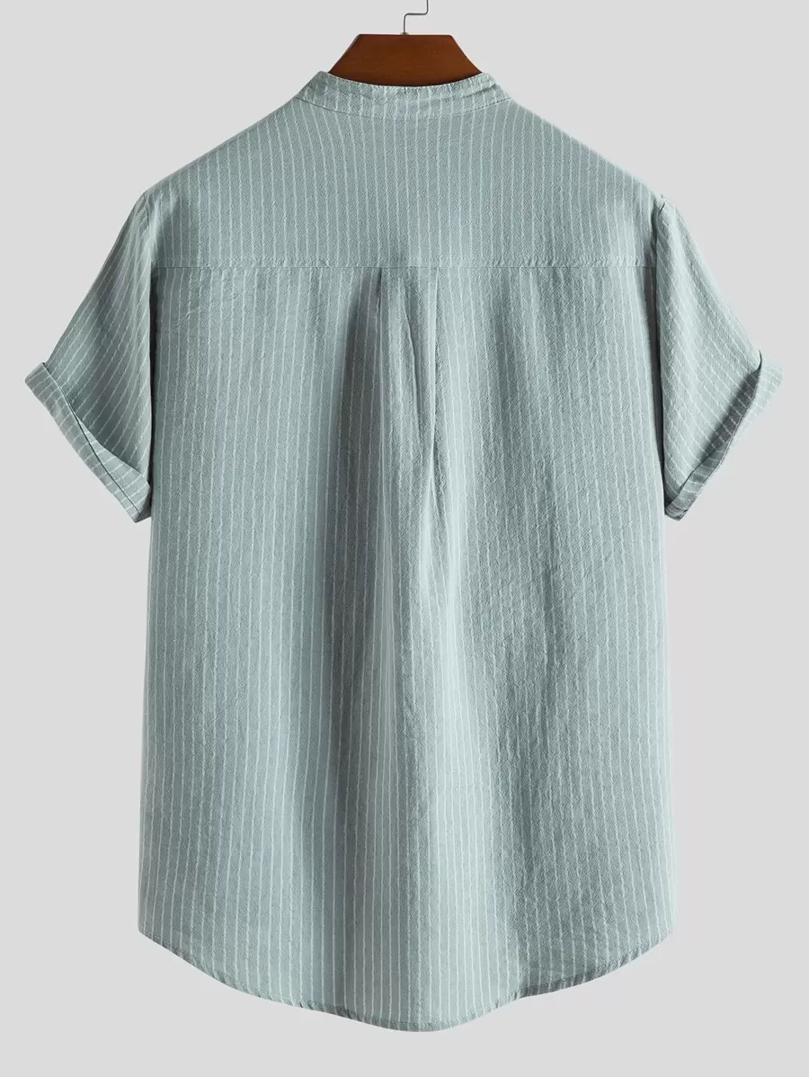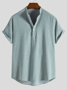 قميص رجالي كاجوال بدون أكمام مخططة بنصف أزرار، بتصميم عالي من الأمام ومنخفض من الخلف، هدية لصديقك