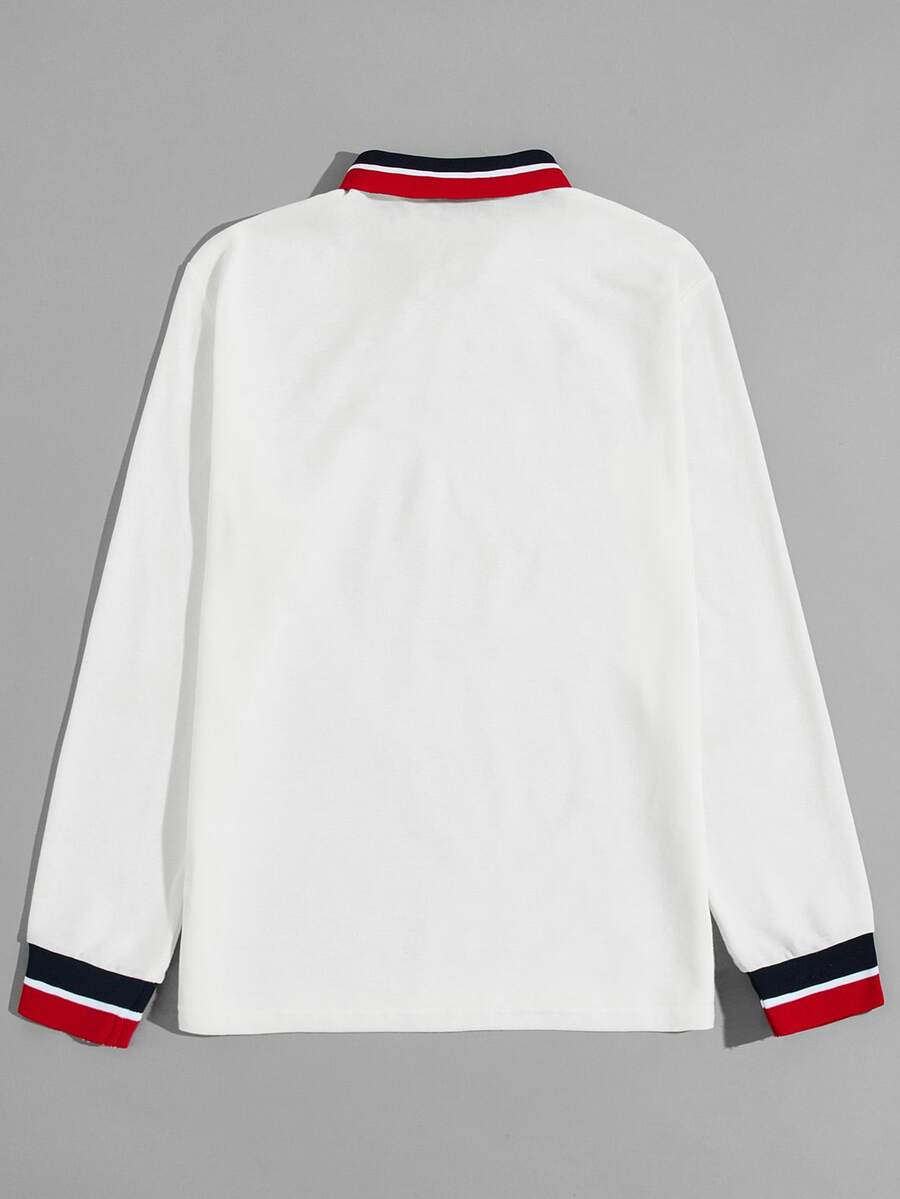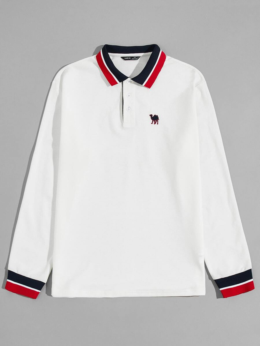 قميص بولو مطرز جمل بحافة مخططة للرجال