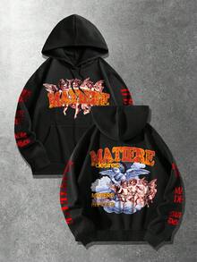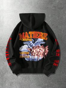 هودي من الصوف الناعم مطبوع عليه دمية ملاك للرجال