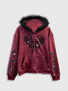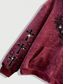 Goth بلوزة هوديي مطرزة بصليب من الراين للرجال، موضة الشارع الخريفية