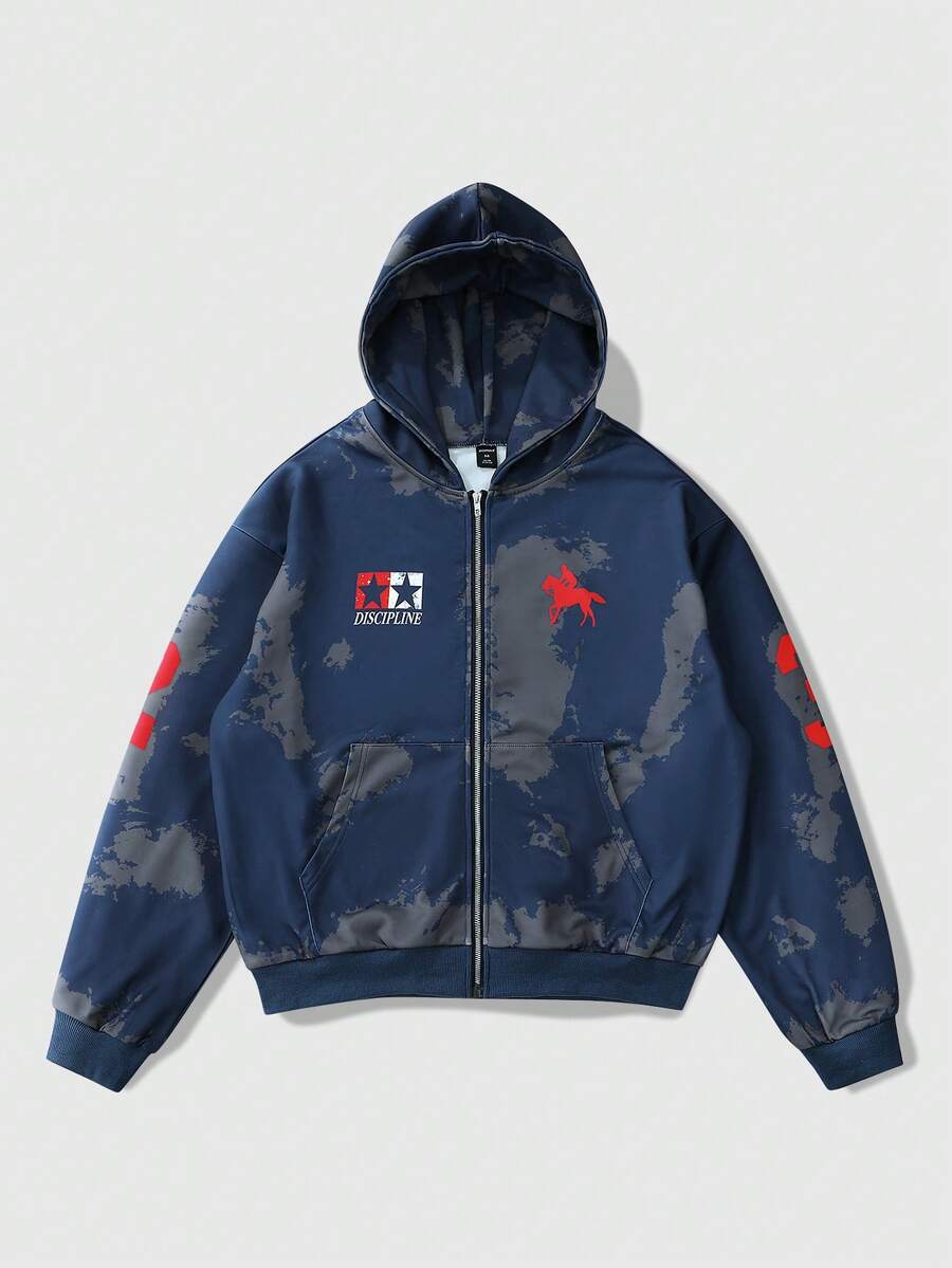 بلوزة رياضية رجالية كاجوال مزودة بسحاب وقبعة