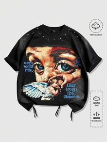 قميص تي شيرت قصير الأكمام بياقة طاقم مغسول للرجال