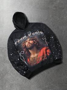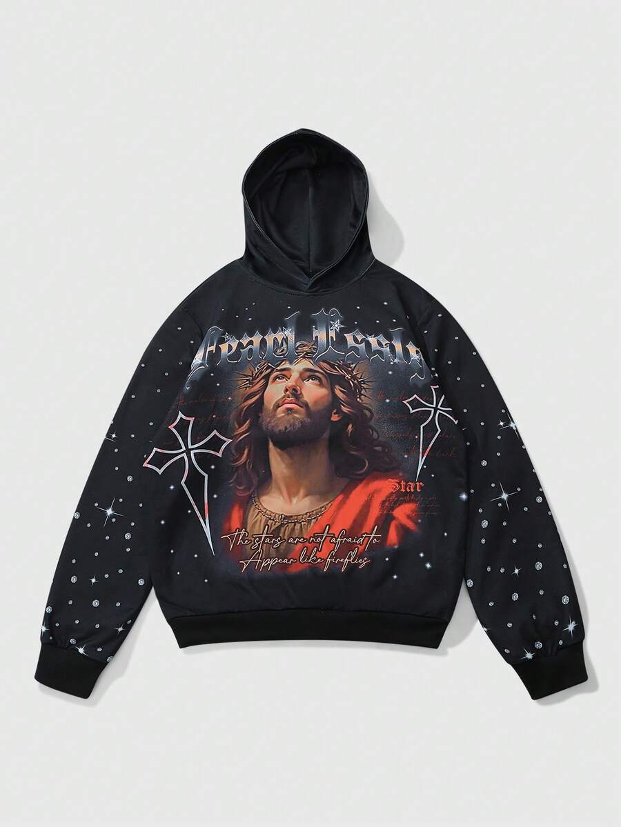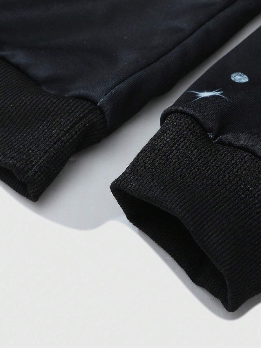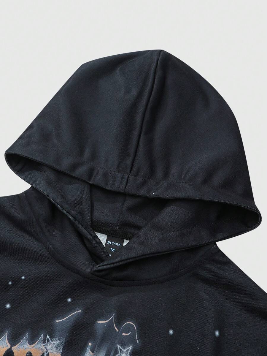 بلوزة هوديي كاجوال للرجال بطباعة شعارات وأشكال، أكمام طويلة، خريف/شتاء