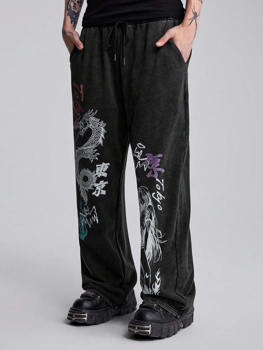 بنطلون رياضي فضفاض بخصر رباط، أسلوب الشارع العادي للرجال بجيوب جانبية