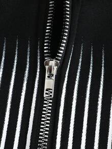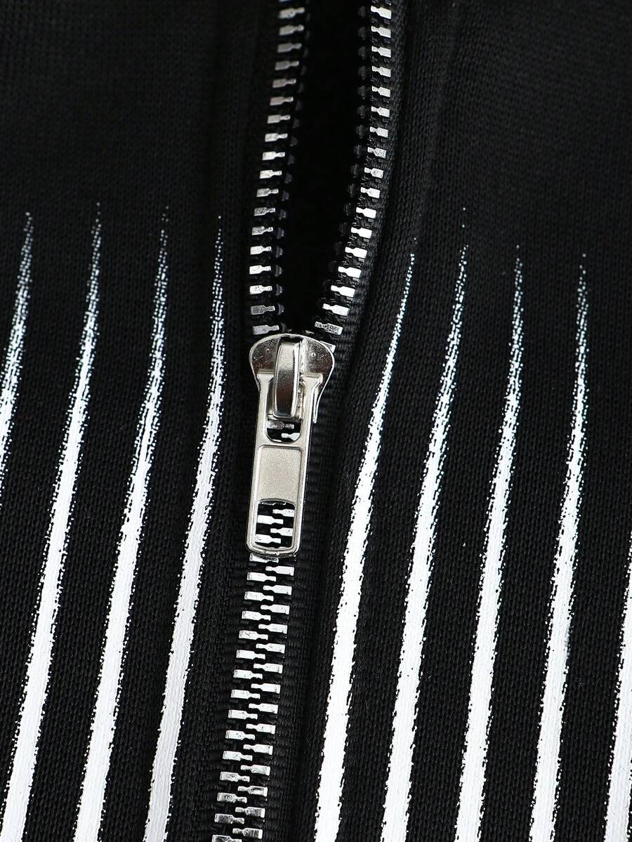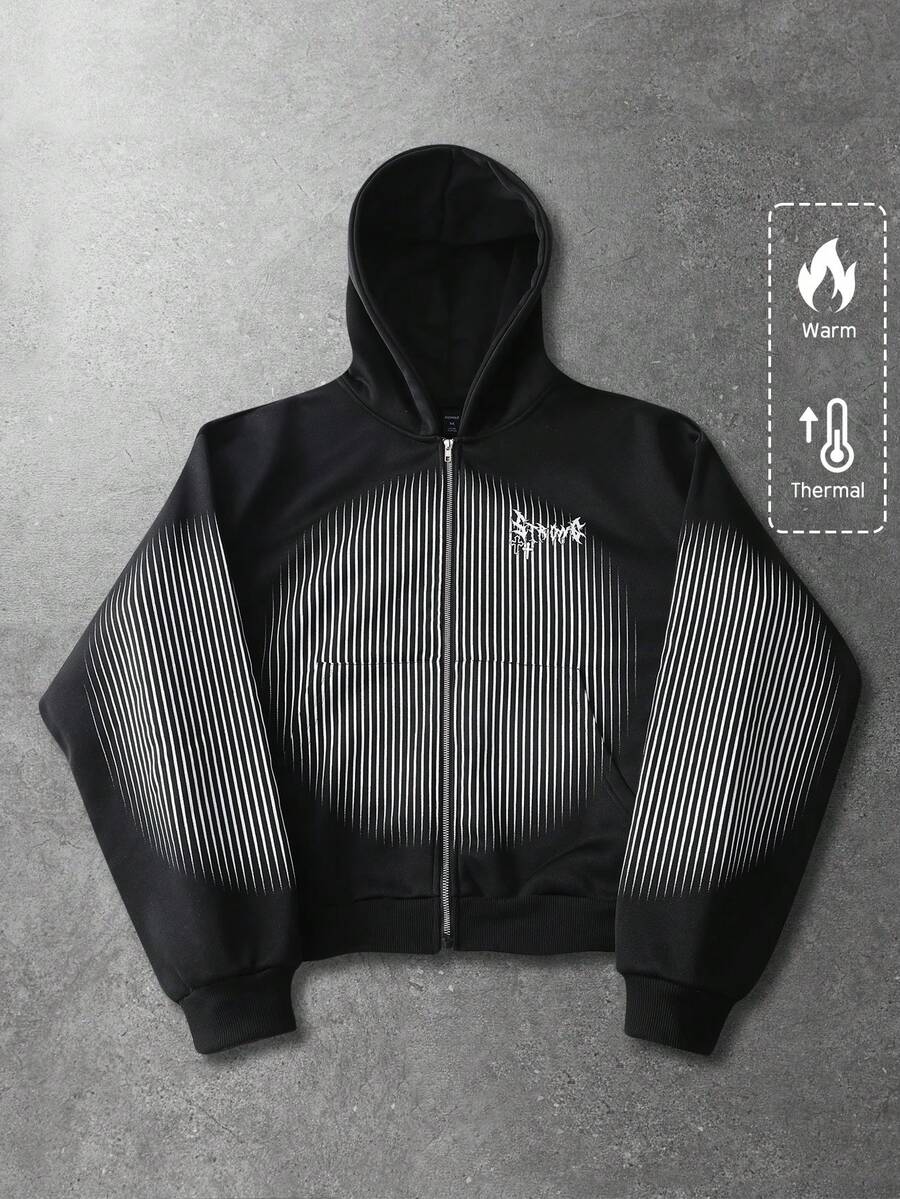 هودي رجالي مزين بخطوط متقاطعة وسحاب، بلوزة رياضية كاجوال