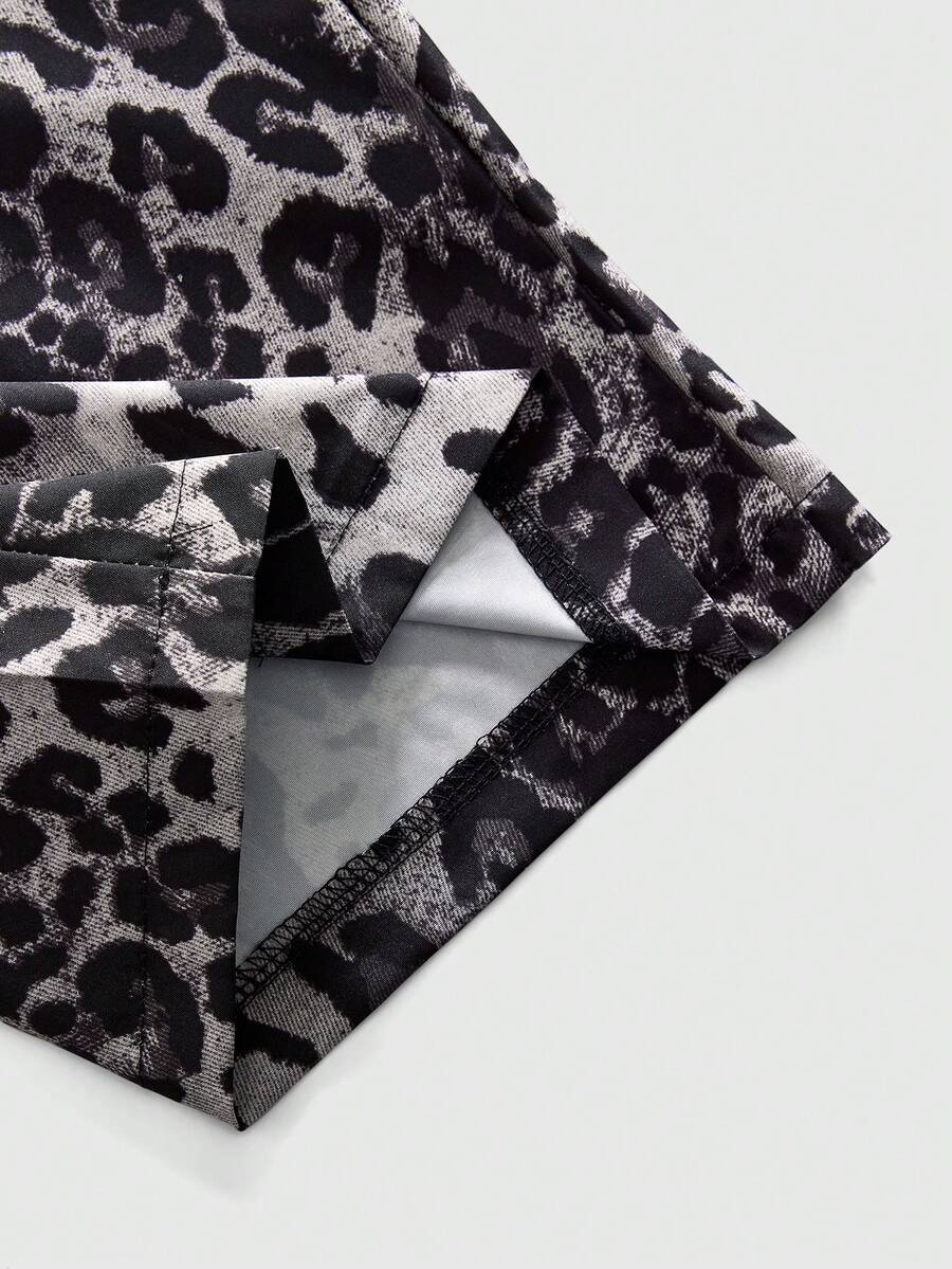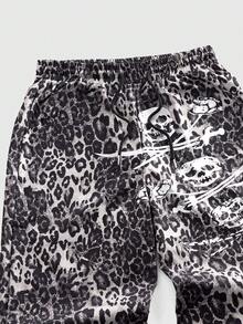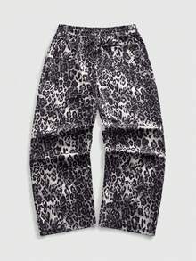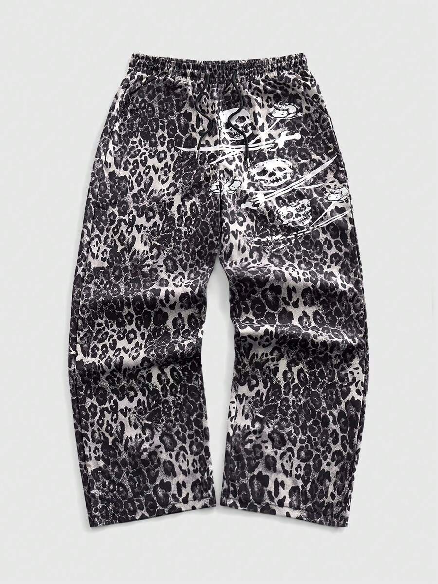 بنطلون رجالي كاجوال بخصر مطاطي وساق مستقيمة فضفاضة بطبعة نمر