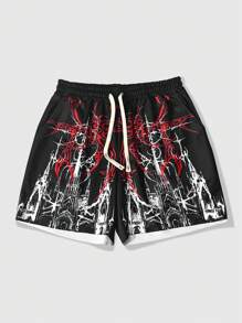 Goth شورت كاجوال متعدد الاستخدامات للرجال بخصر مربوط وجيوب، طباعة كاملة بطراز جوثيك، مناسب لمناسبة عيد الهالوين