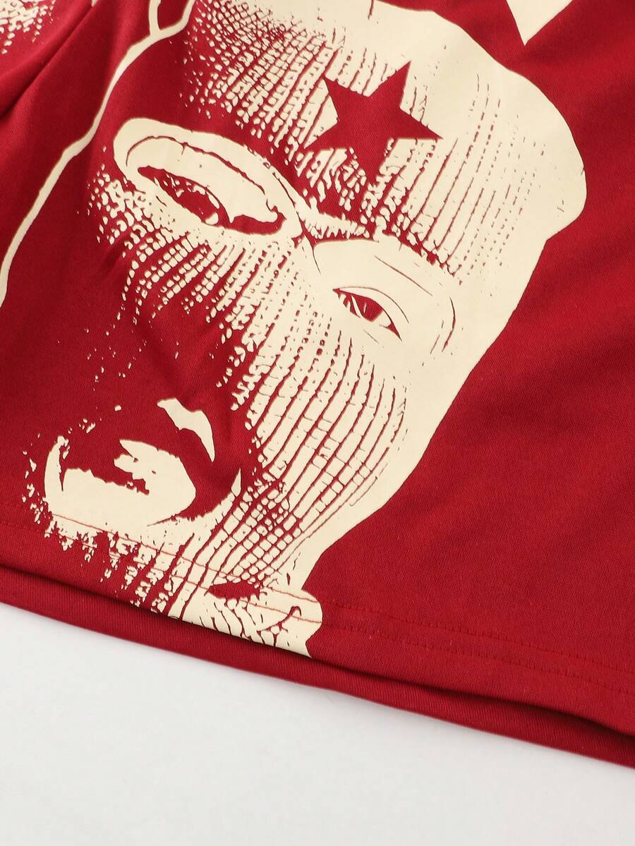 طقم تي شيرت قطن فضفاض مطبوع به صورة رجل، بطراز شارع رجعي