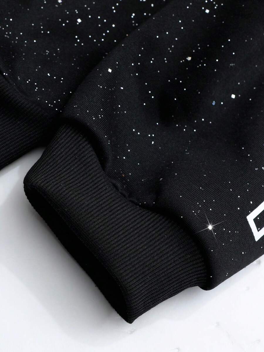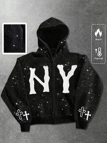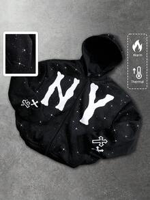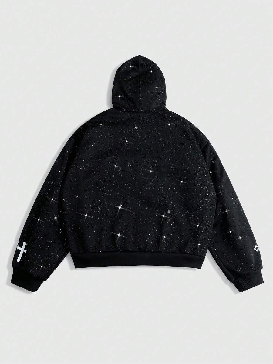 بلوزة رياضية كاجوال فضفاضة مطبوع عليها حرف وصليب مع كابوشون وسحاب للرجال