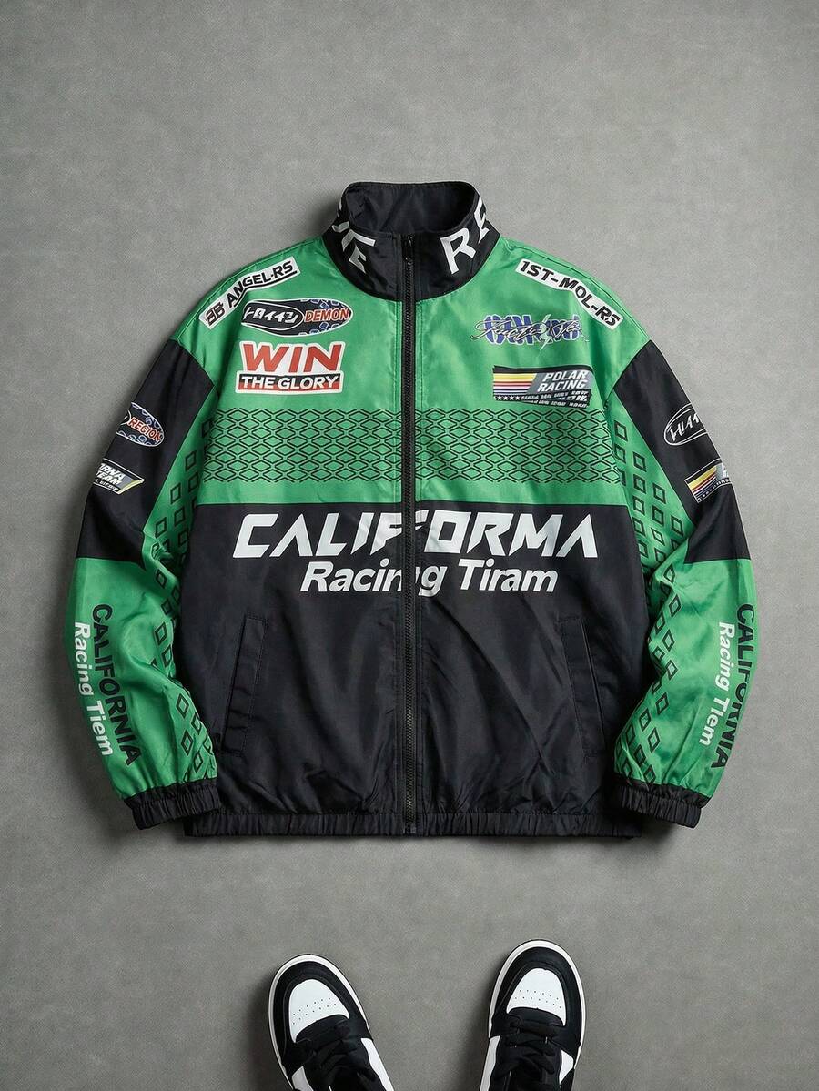 جاكيت كاجوال فضفاضة مطبوع عليها حرف، سحاب أمامي وأكمام طويلة للرجال