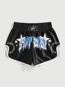 Prep شورت كاجوال فضفاض ذو خصر مرن بطباعة حرفية للرجال