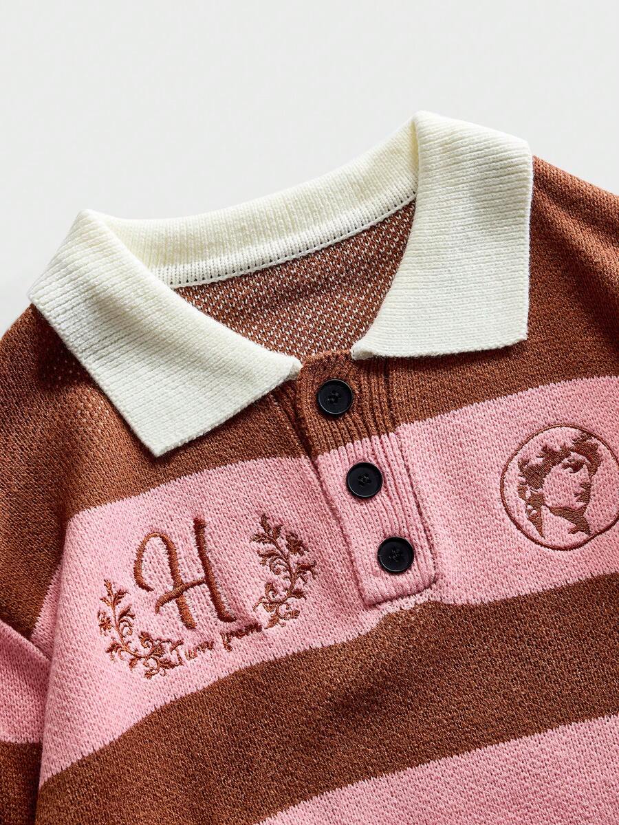 كنزة صوفية محبوكة مطرزة بخطوط للرجال مع طوق