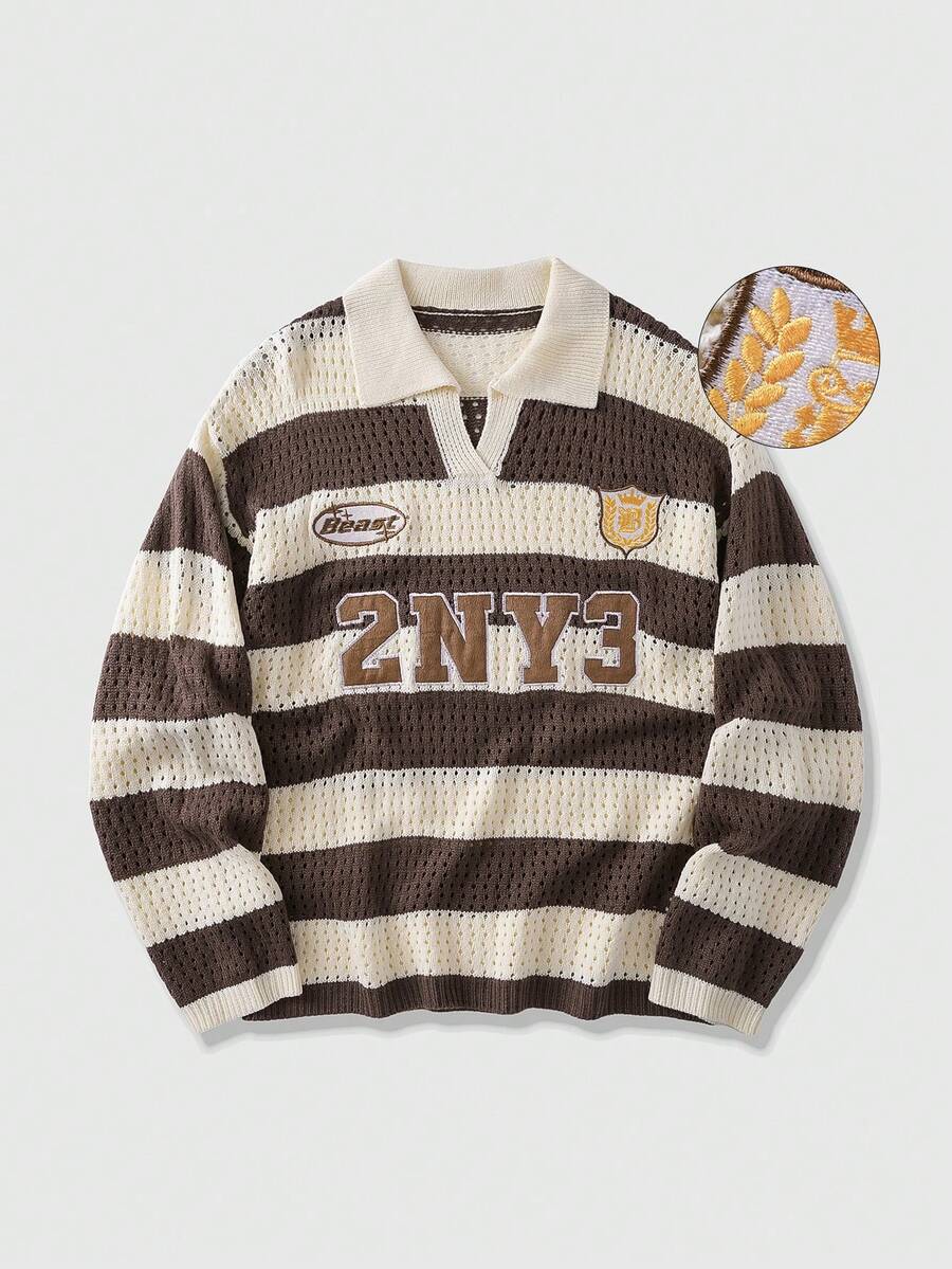 Prep كنزة رجالية مطرزة بخطوط وردية، مناسبة لعيد الحب