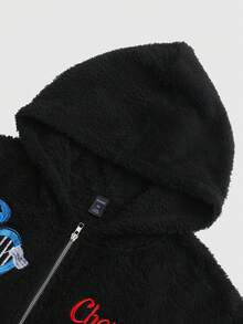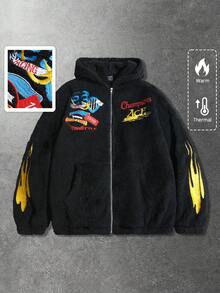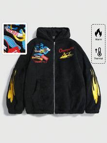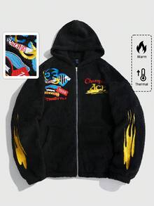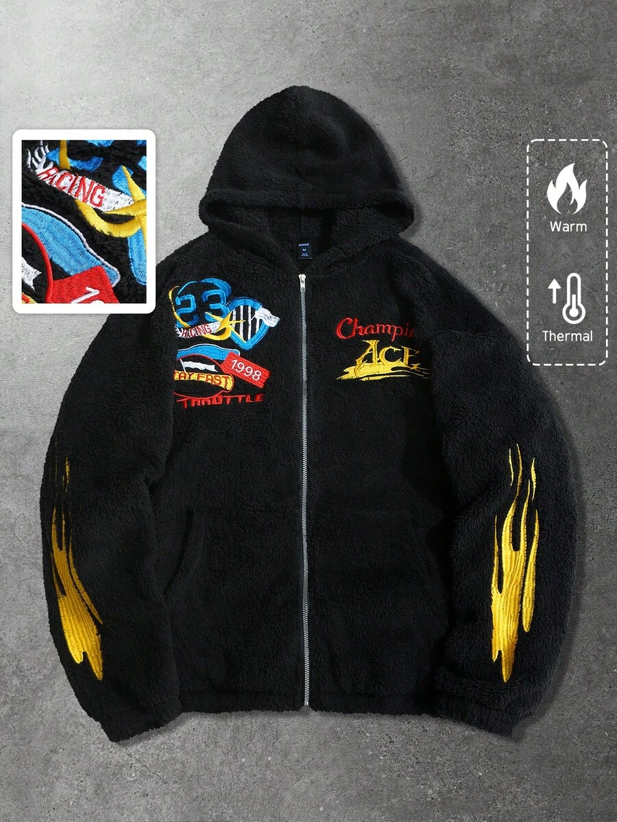 معطف صوفي مبطن حراري للرجال مع رقعة مطرزة، أسلوب كاجوال للشارع، ملابس خارجية أمريكية للخريف/الشتاء