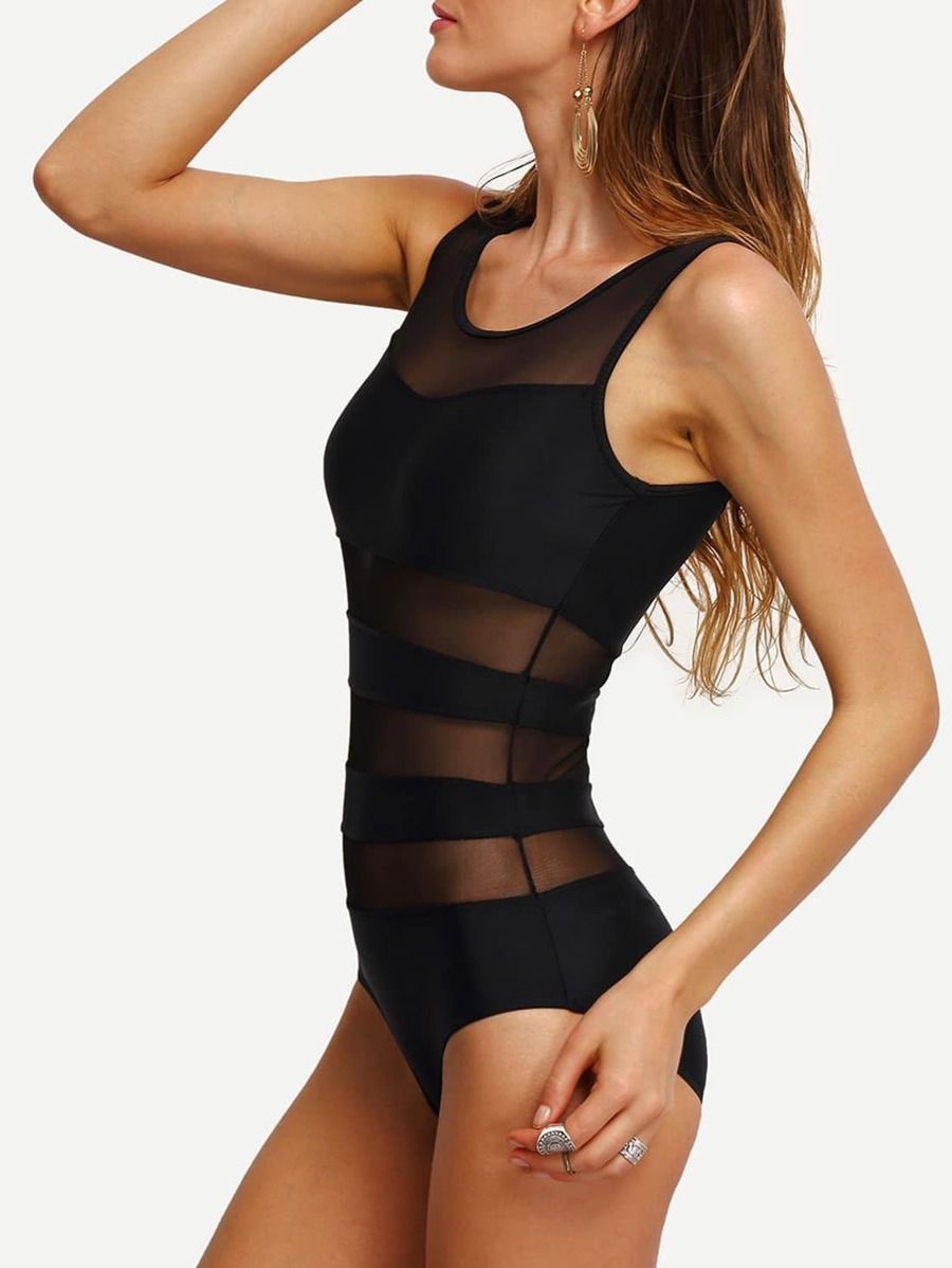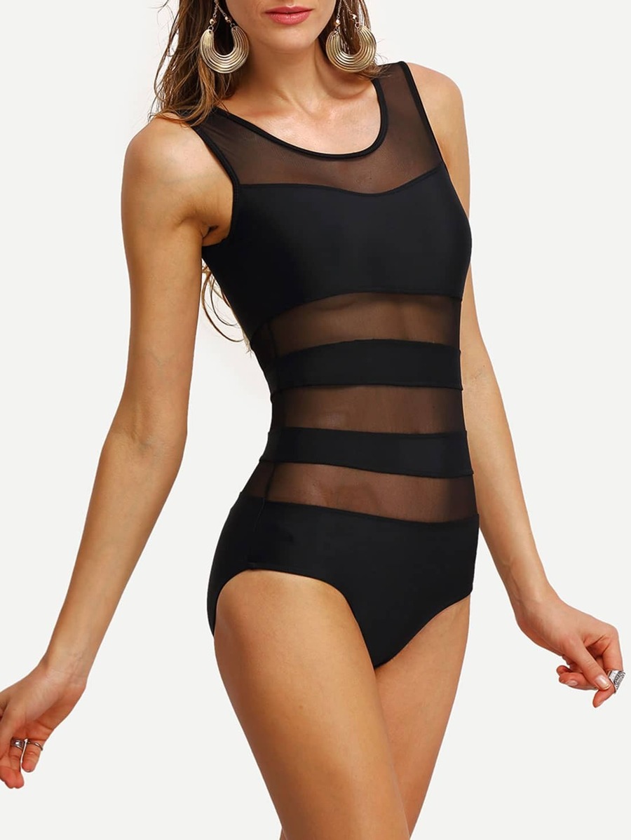 ملابس سباحة قطعة واحدة مع شكل متداخل شفاف