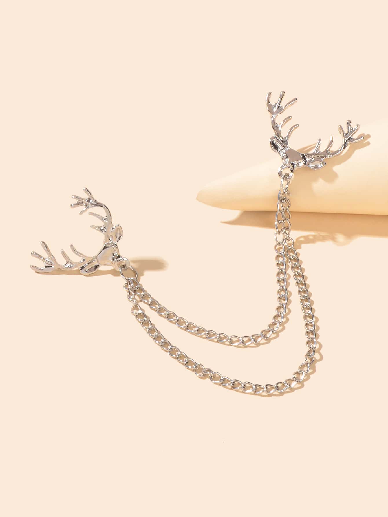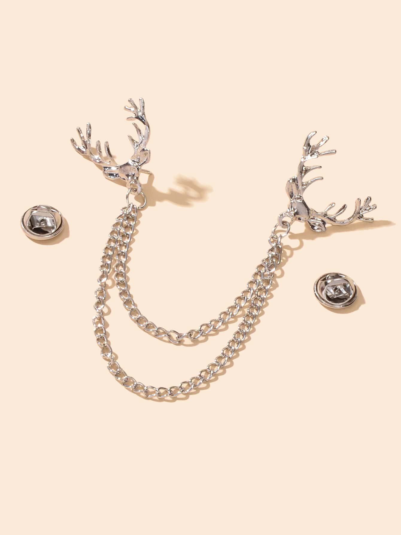 بروش نمط الغزلان بلون فضي من المعدن مع مشبك