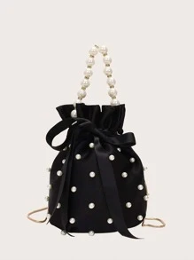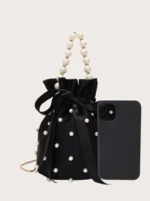 ميني لؤلؤ صناعي & بديكور حجر الراين حقيبة دلو أزياء فاخرة أناقة ميني لؤلؤ مقبض دلو شكل حقيبة كتف خرز لؤلؤ ليلة حقيبة يد مخصص شعار محفظة