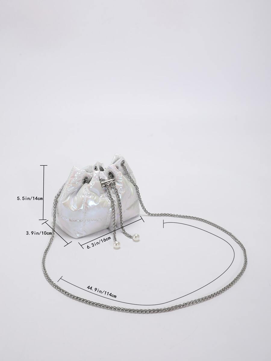 حقيبة دلو ميني نمط مبطن تصميم رباط مزخرف بلؤلؤ