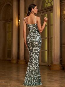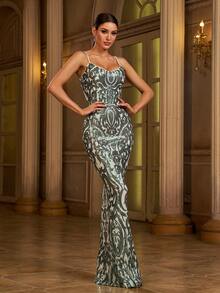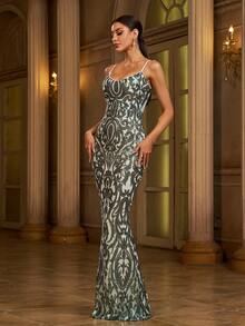 Missord فستان حفلة مترتر مكسي وبحافة حورية البحر