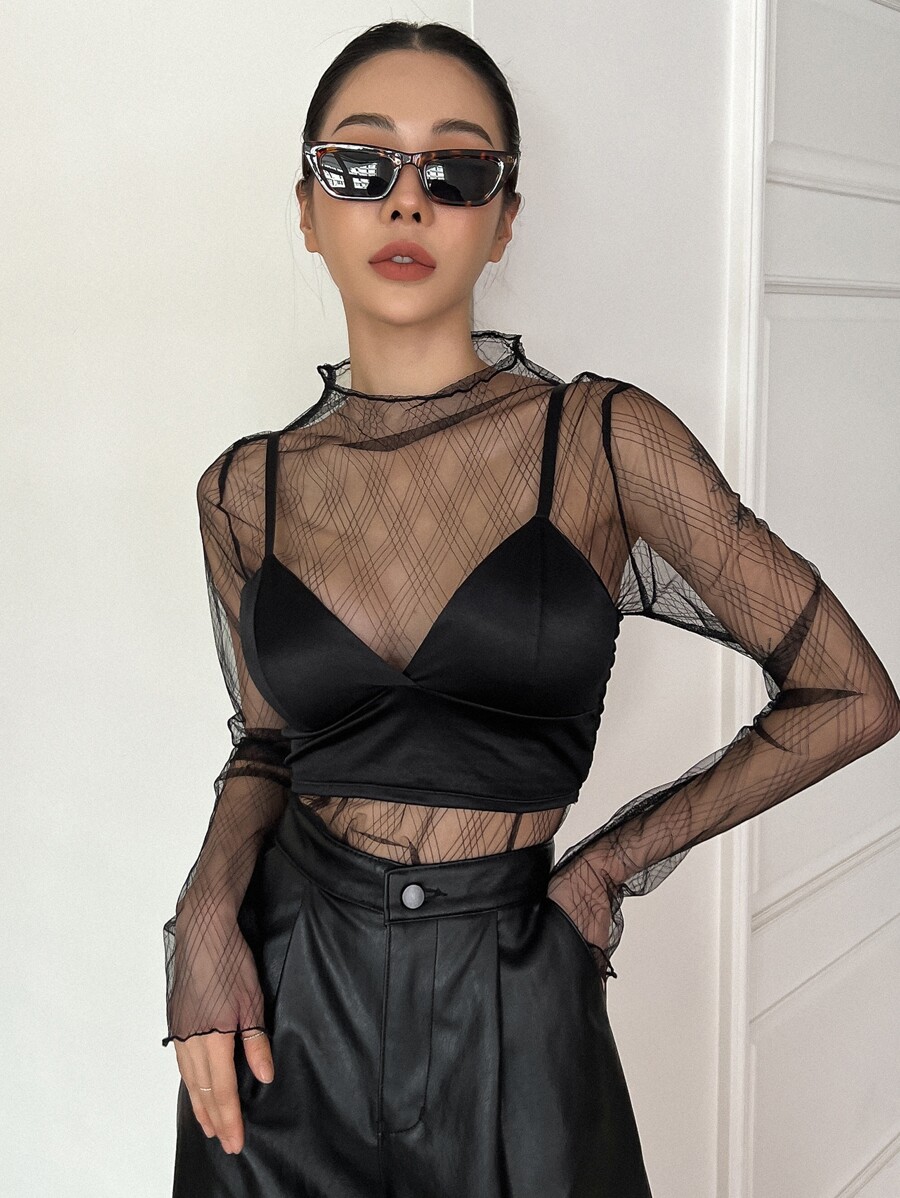 قميص شبكي برقبة مرتفعة بدون صدرية
