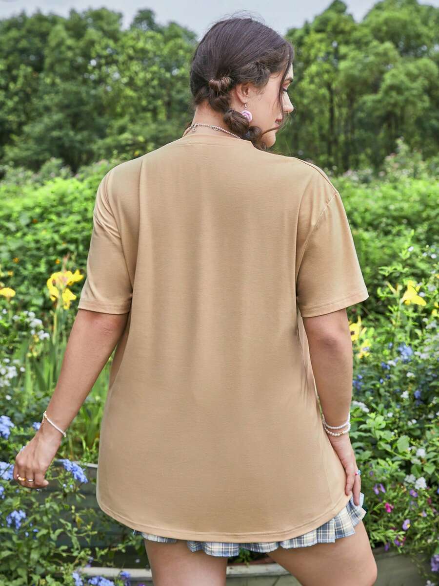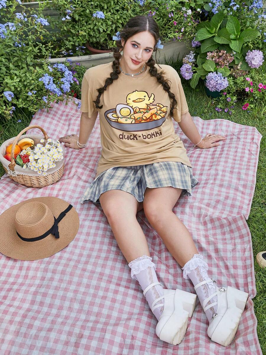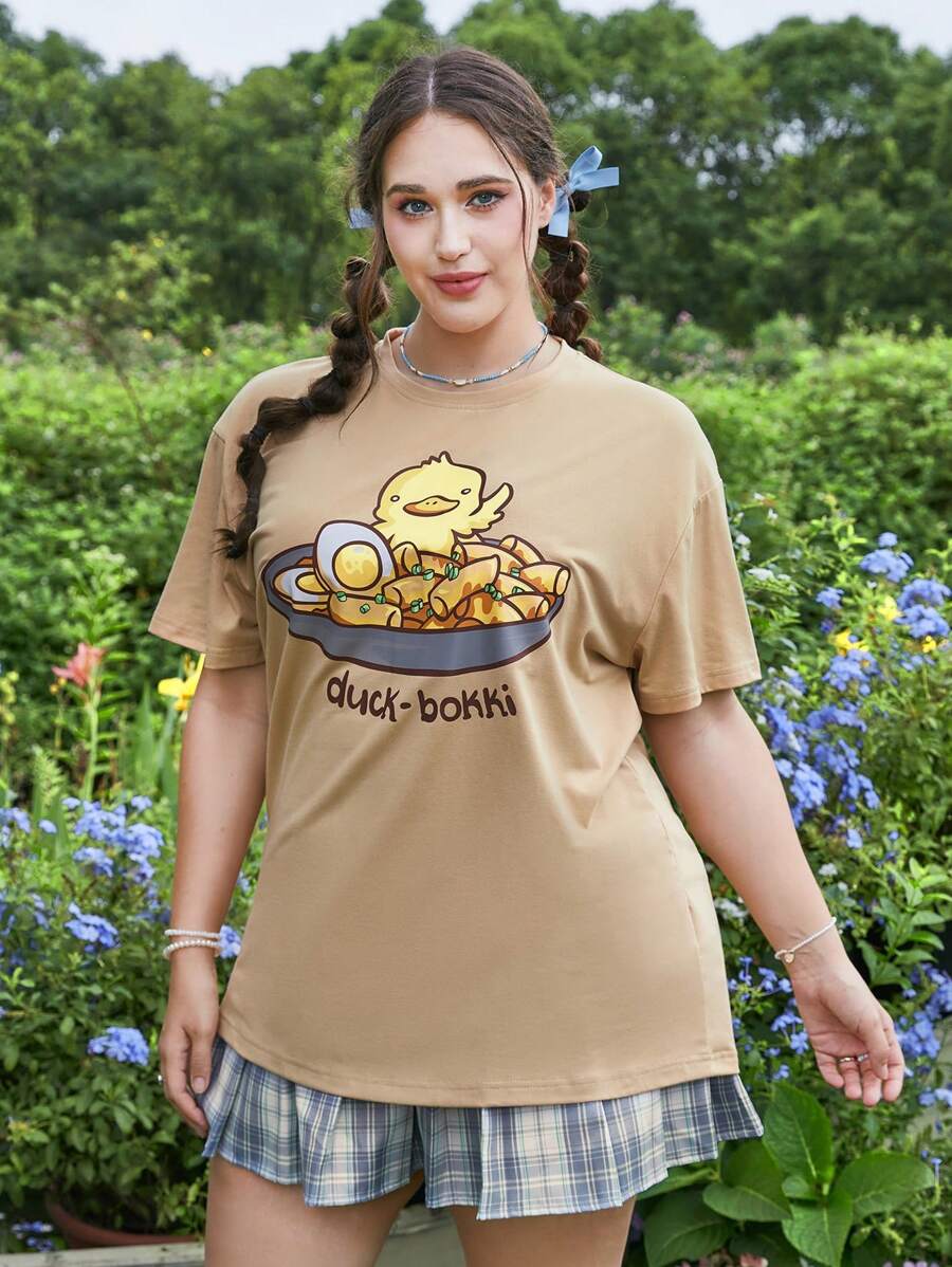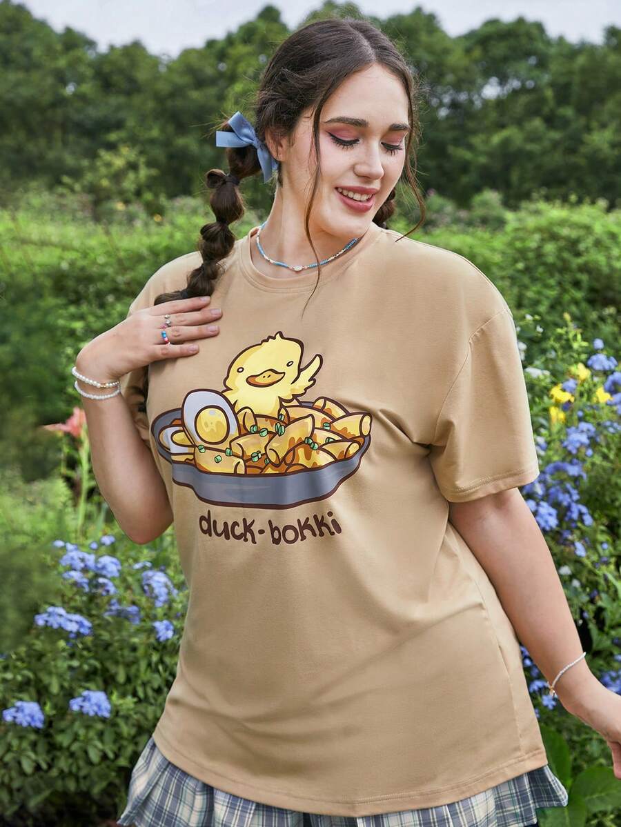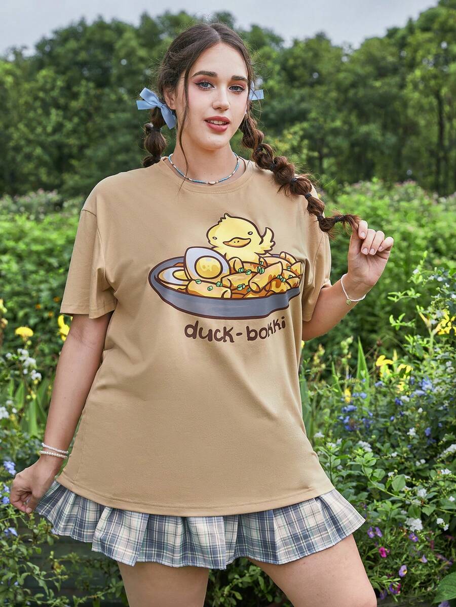 MsChibious تي شيرت بجرافيك عبارة ورسوم كارتون مقاس كبير